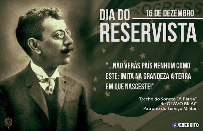 Além dos reservistas, o dia 16 de dezembro homenageia Olavo Bilac (1865-1918), brasileiro dedicado que demonstrou amor à pátria e, por isso, o Decreto nº 58.222, de 19 de abril de 1966, o consagrou como patrono do Serviço Militar.
